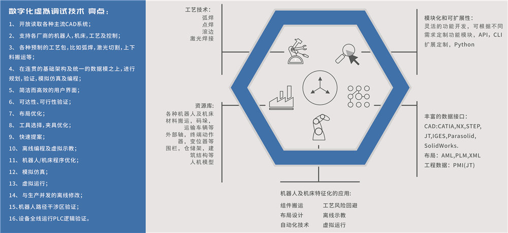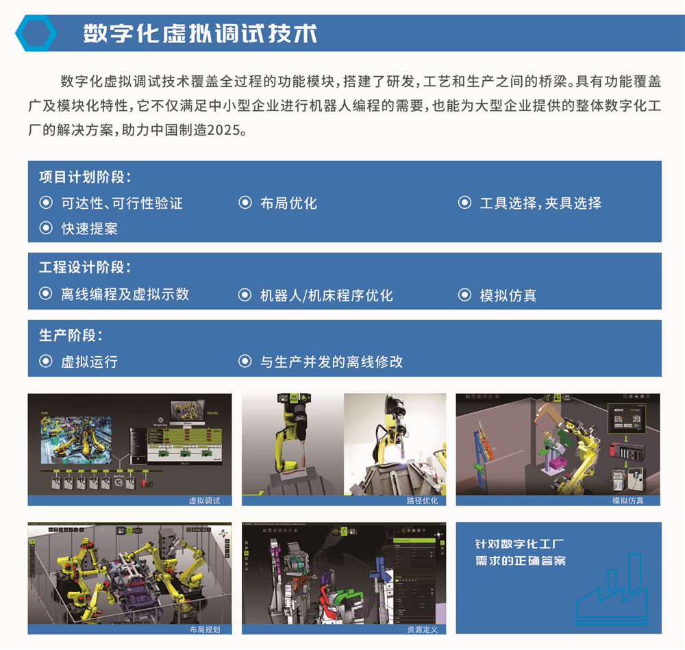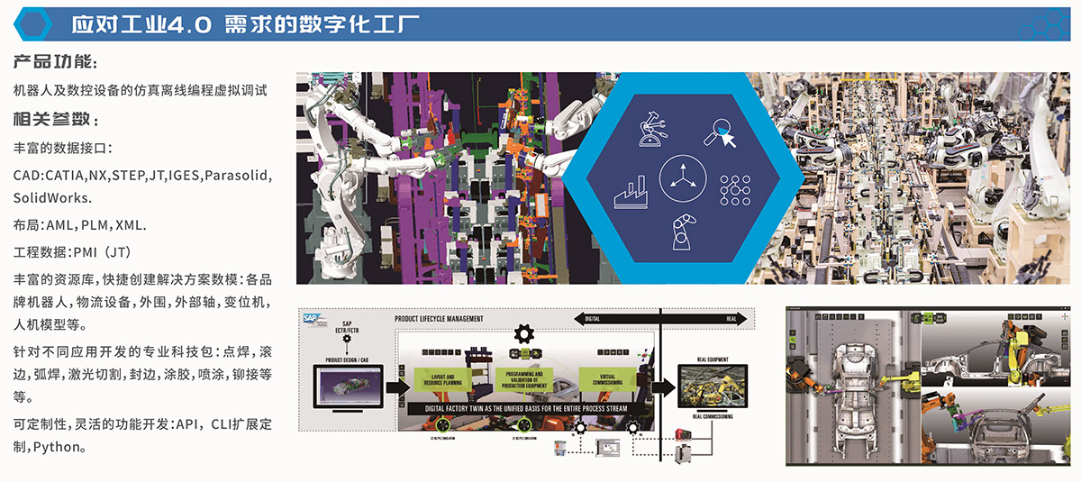机器人离线编程应用技术,相对于在线示教,能够实现多台机器人和辅助外围设备的协调示教,能够实现基于传感器的自动规划,通过连接机器人调度系统计算出与实际相同的虚拟节拍及轨迹,并自动输入可执行程序,从而大幅度降低联动调试时的风险,缩短现场调试时间30%以上。