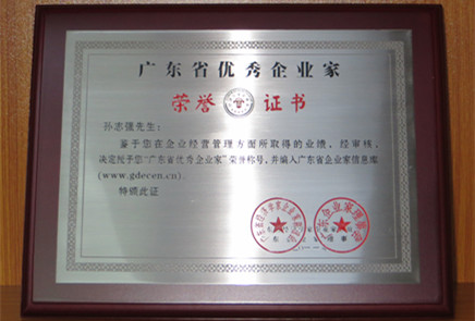孙志强董事长兼总裁被授予广东省诚信企业家荣誉称号。