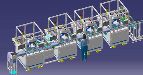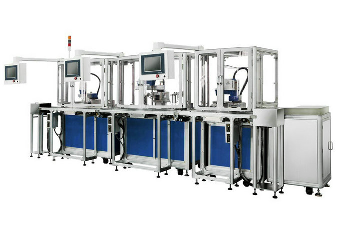 Production line through the integration of visual detection and alignment, jig automatic assembly, automatic PCB and assembly, automatic dispensing, auto stickers chip and other auxiliary functions to achieve IC automatic folding production. The core elements of the production line is Risong technology independent research and development design, domestic initiative and can completely substitute the imported, system registration scheme and practical new patents and control software copyright rights.