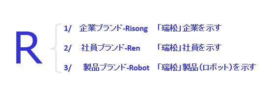 これは、安定で集中力を持つ六角型ビジュアルマークである。シンプルのようだが、全面的な理念内容を持っている。そのうち、Rは三つの意味を持つ: