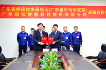 12月20日瑞松科技は広東省溶接技術研究所(広東省中国―ウクライナ・E.O.パトン研究院)と盛大な戦略的提携の調印式を行い、双方は互恵関係、共同発展の戦略的パートナー関係を築くことについて約定し、手を携えてハイエンド溶接分野での全面的な協力を展開する。