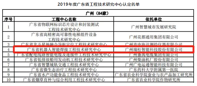 瑞松科技広東省ロボットインテリジェント溶接エンジニアリング技術研究センターは承認され、建設することになった。