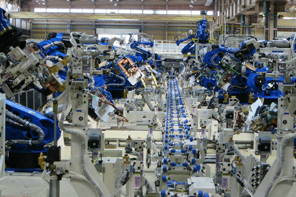 智能机器人生产线在在汽车行业中的使用比例最为广泛,高达61%,所负责的工艺主要有以下几个环节: