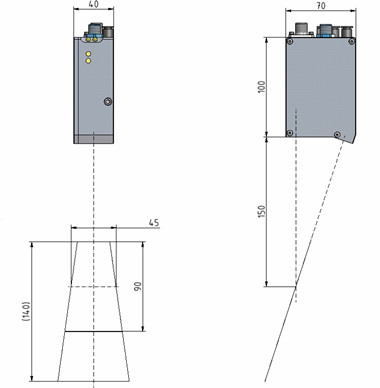 1)测量距离: 150 mm (+/- 45mm或者 +/- 12 mm) ,传感器尺寸小