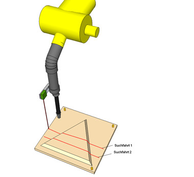 装有传感器的机器人对工件进行搜索,获得工件的方位信息,根据方位信息相应调整机器人的位姿。COLAS-350三维位姿传感器可应用于装配和焊接任务中。