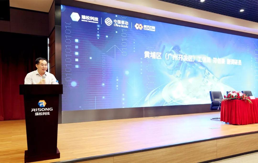Zheng Chuanghao, Deputy Researcher of the Bureau of Industry and Information Technology of Guangzhou Economic & Technological Development District, Sun Zhiqiang, Chairman and President of Risong Technology, Liu Erbin, Deputy Chairman and Vice President of Risong Technology, Wei Li, Deputy General Manager of Guangzhou Branch of China Mobile Group Guangdong Co., Ltd., Cai Fada, General Manager of Huangpu Branch subordinate to Guangzhou Branch of China Mobile Group Guangdong Co., Ltd., Xu Xinhua, Deputy General Manager of CASICloud, Han Xiaoyuan, Assistant General Manager of CASICloud, etc., attended the signing ceremony.
