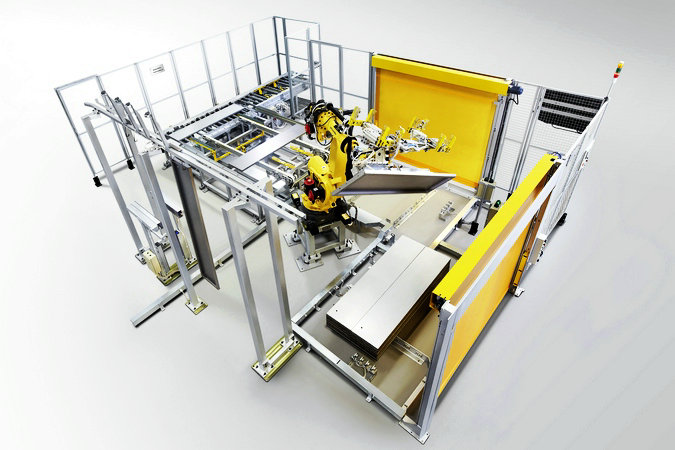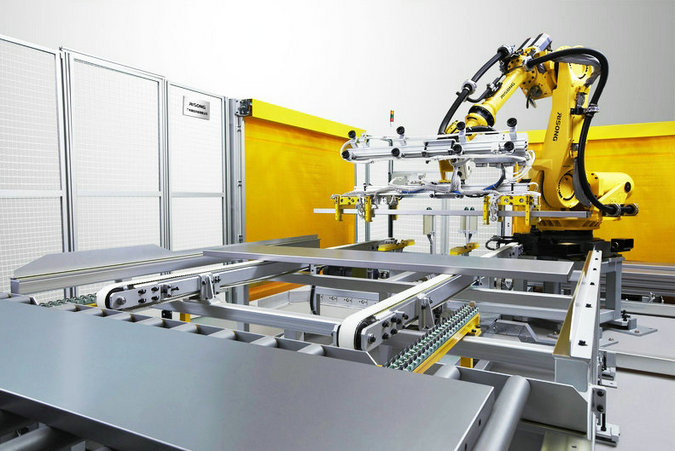 · 以往的电梯层门板喷漆完成后后,需要由人工对工件进行贴膜,抽铆钉,导靴安装,纸皮打包,码垛等人工操作工序,现在整体生产线都是采用自动化生产:实现了胶条自动铆接,导靴自动安装,纸皮自动打包,自动码垛,自动涂胶,铆接工艺等功能。通过自动化设备的导入,减少人员的劳动强度,提高电梯层门板的生产质量品质。可以把电梯层门的所有工艺都集成在一起,实现全自动生产,在国内也是首家。