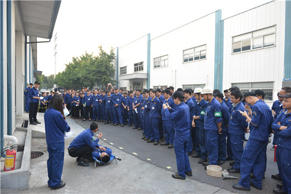 疏散演习:在火警铃声响起后,厂区和办公区的同事们第一时间沿着安全出口进行疏散,用时4分04秒,在安全疏散时间规定标准内(5分钟)。