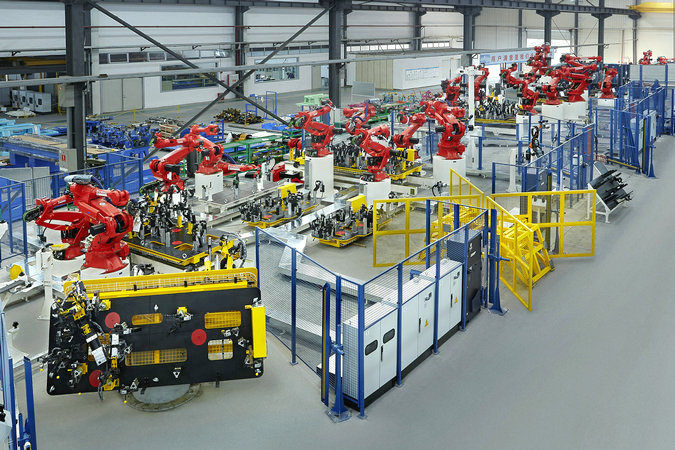 · 项目简介:该项目一期单侧共有23台机器人,其中涂胶工位3台,焊接19台,搬运1台。该项目从APC入料工位导入内板总成,然后进行内外板拼接组成侧围总成件;二期可实现2车型切换,共用生产线。